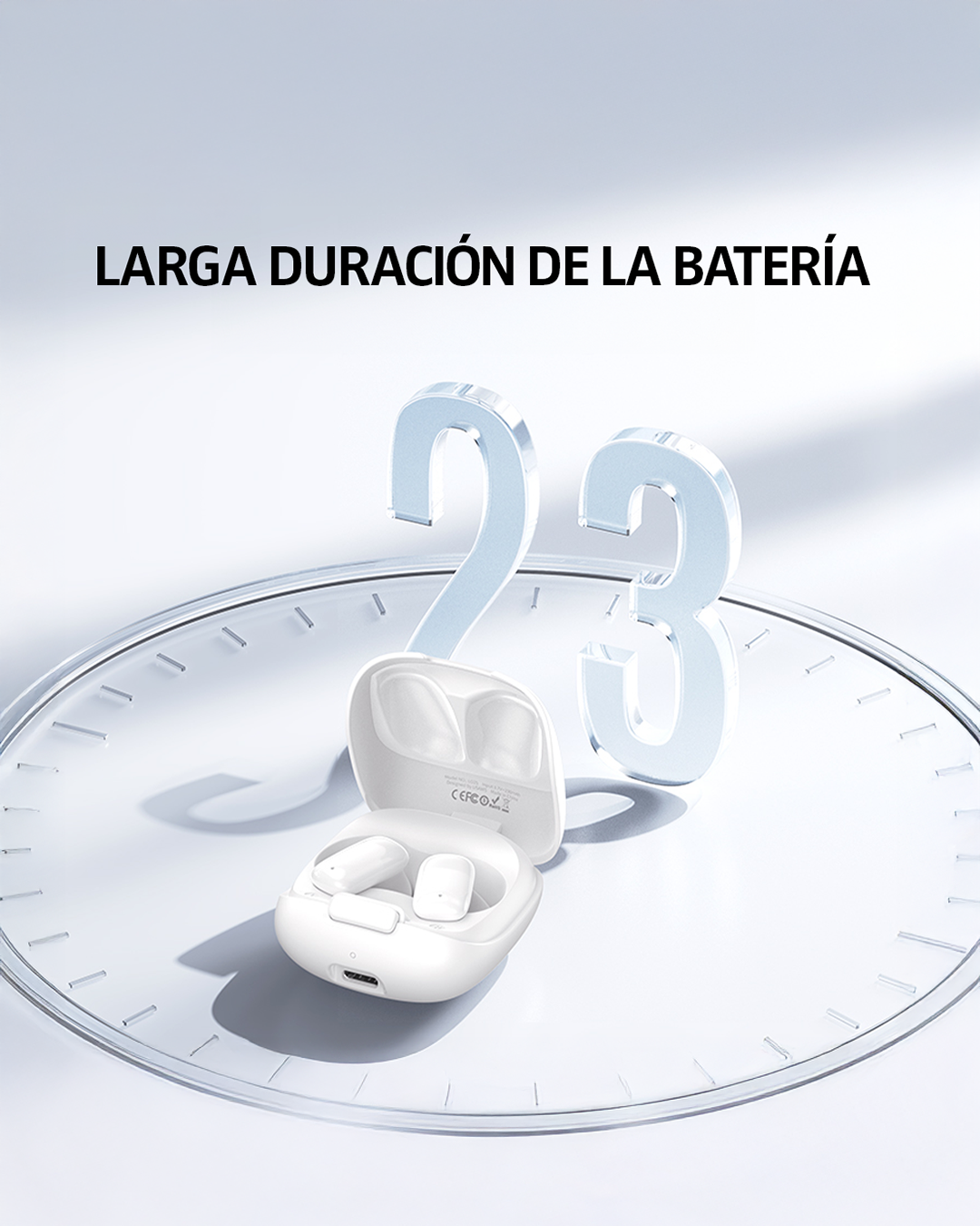Batería de larga duración: Hasta 4 horas de reproducción continua y 20 horas con el estuche de carga.