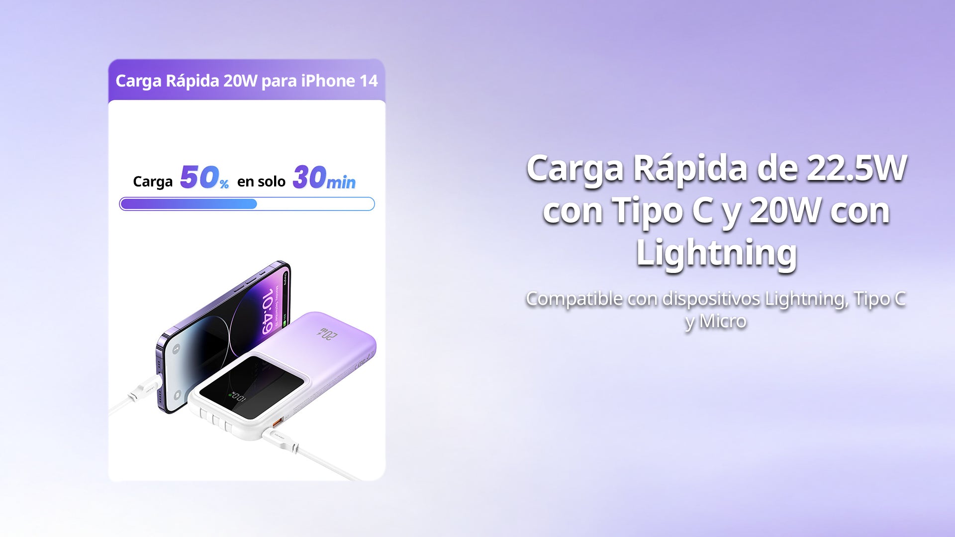 ● Carga rápida PD20W (Apple) y QC 22.5W (Samsung,Xiaomi,etc)