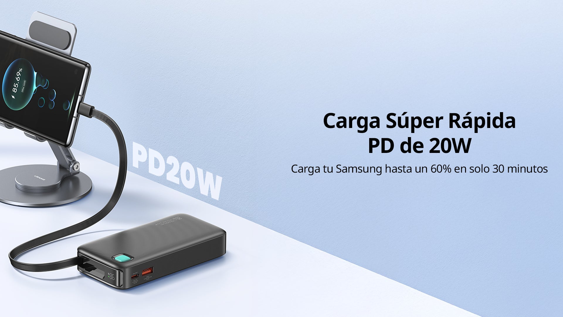 La Power Bank USAMS CD224 de 10000mAh combina potencia, velocidad y diseño compacto. Su cable retráctil Tipo C integrado de 50 cm facilita la carga sin cables sueltos, mientras su salida PD 20W permite llevar tu Samsung al 60 % en solo 30 minutos. Ideal para iPhone 15, Samsung S24, Xiaomi, Huawei y cualquier dispositivo con carga rápida.