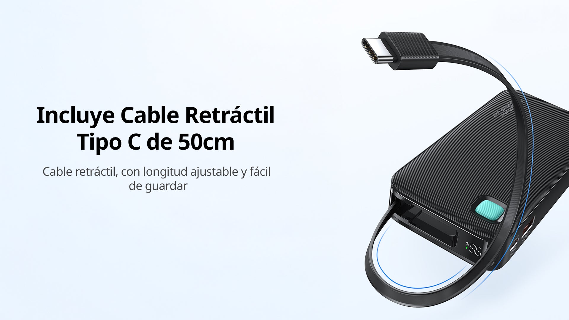 Cable retráctil integrado Tipo C (50 cm) – flexible y fácil de guardar