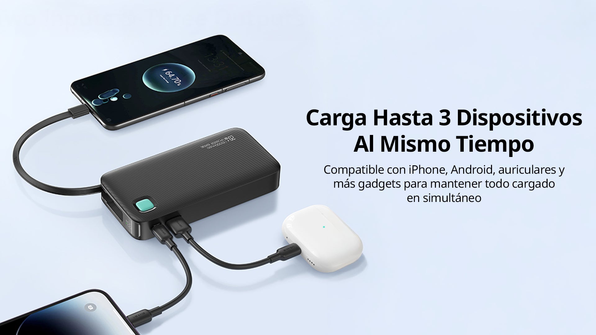 ● Compatible con iPhone, Samsung, Xiaomi, Huawei, tablets, audífonos y más