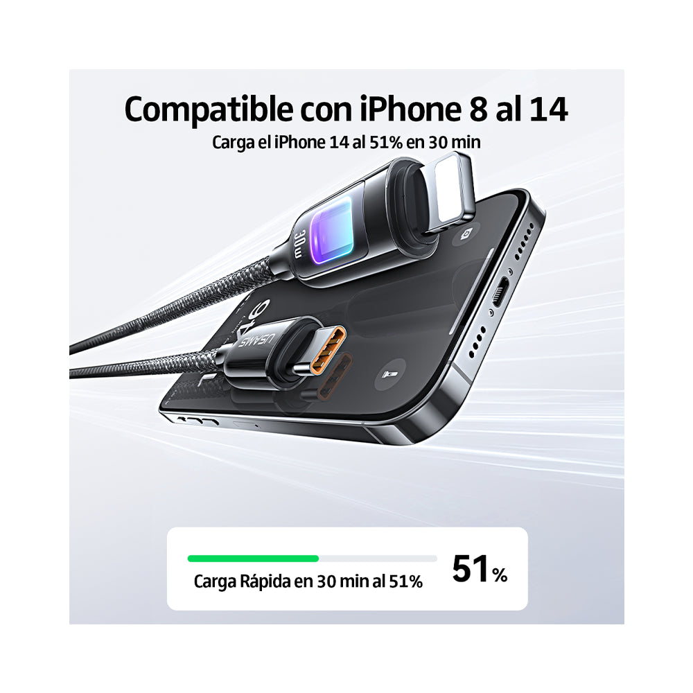 Carga rápida de 30W: Compatible con iPhone 14, alcanzando el 51% de carga en solo 30 minutos.
