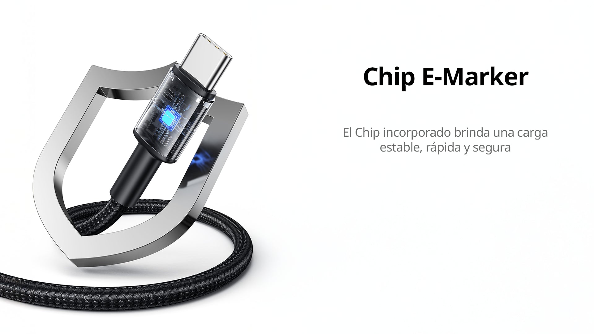El Cable USAMS SJ727 USB-C a USB-C de 240W ofrece potencia extrema y seguridad avanzada gracias a su chip E-Marker integrado. Con soporte para protocolo PD3.1, permite cargas ultrarrápidas en laptops, tablets y smartphones, manteniendo transmisión de datos estable y diseño reforzado en nylon trenzado.