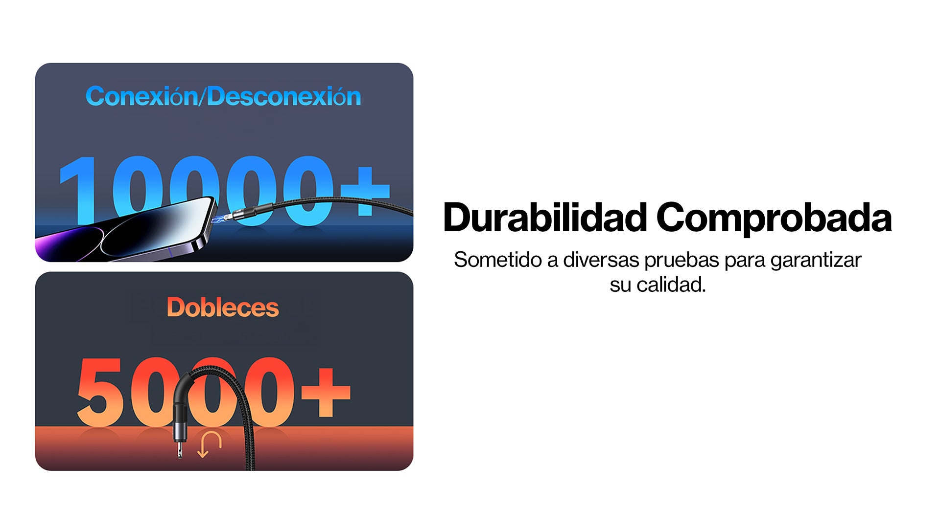 ● Resistente: 10.000+ conexiones y 5000+ dobleces