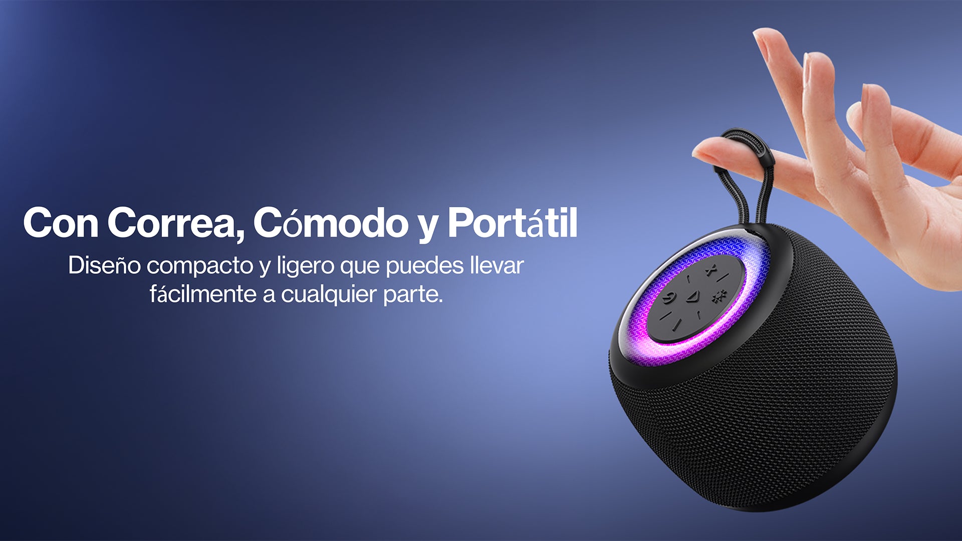 El Parlante USAMS YX014 Mini combina sonido envolvente 360°, luces LED multicolor y diseño portátil con correa, ideal para llevar tu música a cualquier parte. Su batería de 1200mAh ofrece hasta 4 horas de reproducción continua y la opción de emparejar dos parlantes en modo TWS para un audio estéreo más potente.