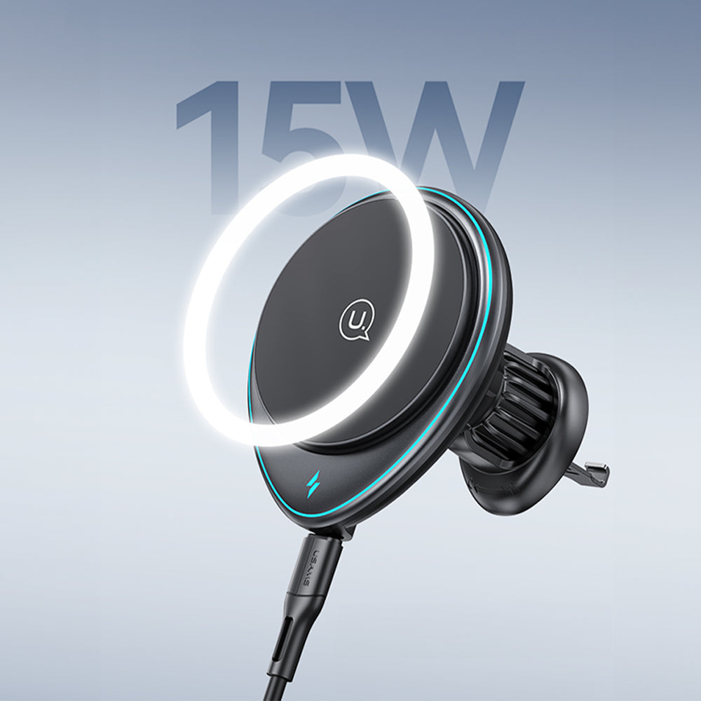 Soporte Celular Para Auto Carga Inalámbrica 15W Usams CD222 Compatible MagSafe y Android(con anillo)