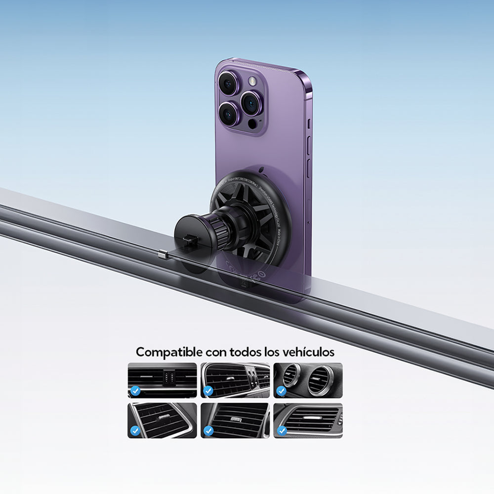 Optimiza tu experiencia de conducción con un accesorio que combina funcionalidad, estilo y seguridad. Asegura tu teléfono mientras lo mantienes cargado con la última tecnología inalámbrica.